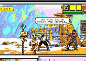 The gameplay is a perfect blend of Streets of Rage and Street Fighter II that fits the comic book setting perfectly. You go from panel-to-panel, defeating enemies as you go along, much like going from area-to-area in Streets of Rage. Sketch features a slew of special moves that are activated via d-pad movement along with button presses, much like the Street Fighter games. The panel-to-panel gameplay gives the game a feeling all its own, you really feel as if you are in a comic book fighting for your life. The gameplay is about as rock-solid as one could expect. The gameplay is quick, so be on your toes if you want to vanquish the evil Mortus and his band of minions out to destroy Sketch.