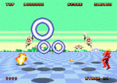 The themes made for this game are consistent with the sounds of what we have been used to calling Space Harrier and have proven true in this sequel also. The music is enjoyable, with the main theme being long before it begins repeating. Boss music is pretty good and each boss has a different theme. As for the sound department, it gives a solid dose of enjoyment too. Although there are not many sound effects used in the entire game, the sound has been used correctly as far as a Space Harrier title and theme should be concerned. Hats off.
