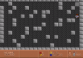 It sounds simple, but it isn’t. The main problem is that Joshua, the guy you control, is very easy to kill. Touch a falling rock? Get blown up? Run out of time? Bump into a trap tile? Touch an enemy? You’re dead. There are a lot of ways to meet your doom, and odds are that once the explosions start and debris begin to fall you’ll be kissing your lives goodbye. But take heart, because you get as many shots at a puzzle as you need. At first, you’ll probably steam through the game at a decent clip. Then around level twenty the difficulty begins to accelerate until you end up working on a single level for days. When I played through this game, I found myself possessed by an almost obsessive desire to clear all the levels. Other people who’ve played it have experienced the same sort of thing, so I think it’s safe to say that there’s a danger of addiction.