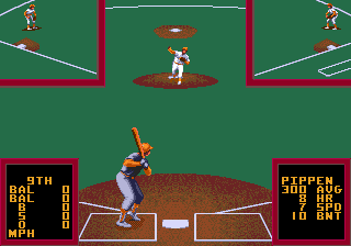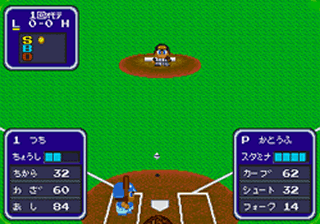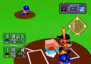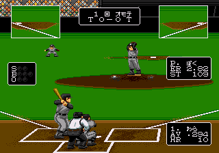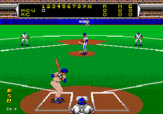 It truly is a shame that this game wasn’t brought over to the states! Awesome graphics and presentation with gameplay to match! It also has actual Japanese teams, which may have been the reason for it staying put (although it wouldn’t have been too hard to convert team symbols to MLB teams). It even features an all-star game, which wasn’t a common item at the time. The actual gameplay is pretty fun to play, even with a couple of irritations. The batting view is from an unusual quarter side, which can make for some difficult pitch placement, but it does make for an easier batting. With less movement, it isn’t hard to put the bat on the ball. The in-game music is a great part too, with an upbeat little tune that the various sound FX can almost seamlessly flow into. If there’s any real complaints about it, the fielding can become irritating, especially when you can’t run with the ball, and when there’s almost no way to see where your outfielders are on a fly ball before making it almost impossible to catch it at times. Other than that, this game is pretty fun.