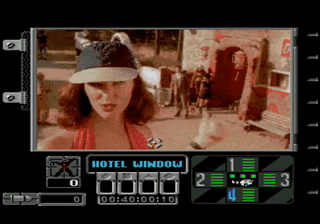 According to my online dictionary tracking skills, a wirehead is a hacker specializing in hacking into communication lines. The story is one of the more bizarre ones I’ve heard, involving an ordinary man named Ned Hubbard, who has a remote control chip implanted in his brain. Now, a mad scientist is after his unique gift. Somehow, the control of the remote falls to you via the Genesis controller, and you must guide poor Ned through some of the most elaborate scenes filmed for a FMV games. Everything from car chases to and barroom brawls await you! At each juncture in the game, you’re given the options of which buttons to press. As in almost all FMV titles of this nature, memorization is the key to success.