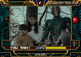 Oh crazy dubbed-over Ultraman rejected clips. Masked Rider, or Kamen Rider Zo as its known in some circles, is the story based on some Japanese movie or TV shows. Your main goal is to protect or rescue some kid name Hiroshi from the evil Doras. Your character is also some human/grasshopper hybrid with powers of both. Who but the Japanese comes up with such odd ideas for characters? As with most FMV titles, you press the D-Pad or punch button at certain points or take hits to your health. Survive, and you get to see more of this weird video. If you like the Sega CD Power Rangers game, then this will definitely hold some attraction for you. If only the gameplay were as kooky and fun as the characters and premise, then we’d really have a game! Taken for what it is though, Masked Rider is a campy romp that even FMV haters can’t help but smile at (for all the wrong reasons).