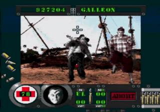 This is one of the questions that has plagued me my whole life. Who did shoot Johnny Rock? Will this vile character be brought to justice? And should I even care that Johnny Rock has been shot? American Laser Games thinks so, and its FMV pulp thriller takes us back to a simpler time in the 1930s, when mobs rule the streets and a nice singer like Johnny Rock could be gunned down in his prime. The game combines detective story with the ability to shoot the baddies, all in your attempt to give justice to Johnny Rock and what was done to him. Unlike other ALG offerings, you have a tommy gun here, and you actually need to buy bullets! Moreover, each “death” costs you cash, and the game ends when you’re out of money.