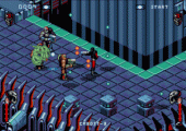 Other aspects are pretty dull – the music is disappointing, and not nearly as aggressive or destructive to satisfy me. This is about a trio of blood-thirsty mercenaries turning baddies to a milky-white paste and generally taking no names. A thrashing metal soundtrack or oppressive industrial techno would have gone over well, but instead we get a (Metroid-ish?) electronic soundtrack composed mostly of bleeps, whistles, and general noise. Synth bass still kicks in nicely between levels, but overall the twelve-track OST is both boring and unimpressive. Sound effects are pretty blasé as well. Enemy screams and gun noises are largely undefined – it took me a while to figure out what was what. Basically this is a game you could play muted without any loss of joy at all. All you really need is to see the action; the rest is unremarkable.