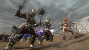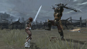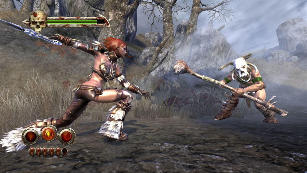 The dodge and parry system further complicates things. Enemies’ charged attacks are color coded -orange means dodge and blue means parry – and when countered successfully, the result is a flaming strike that usually leaves Tyris as the only one standing. Lamentably, enemies often attack in groups with one or two charging blue while others charge orange. This leads to one successfully parrying one attack only to be nailed by another that was meant to be dodged. Moreover, there’s a bit of a delay when executing a parry, which means that it has to be timed PERFECTLY or Tyris will be hit.