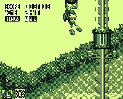 All of that could be forgiven if the console could actually handle the game properly. Like I said earlier, the scrolling is a mess. Remember all those times you were trying to watch a scratched or dirty DVD that plays but it seemed to skip every other frame and just jumped around and is really scrambled? Well that’s just how this game feels and plays, and visually it’s almost impossible to see what’s going on a majority of the time. Screen shots won’t do this game justice because the Game.Com is capable of some decent visuals as long as they aren’t scrolling. What’s worse is that the controls also barely work. You can barely move when you jump, which causes you to die any time there are spikes on the ground, as you have to be going at full speed and time your jumps just right to make it over free and clear. The spin dash also barely works. It’s quite similar to Sonic CD, where you only have to press the button once to spin and go, but you have to hold right or left for the entire duration of the spin. Even then, you can just barely make it up hills or slopes. I was amazed just how much time I ran up on the clock just trying to get the dash to work right most of the times. It’s really bad, and I quite honestly don’t know if Game.Com is all to blame. I think a lot falls on the programmers’ incompetence.