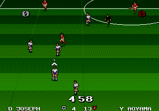 Now, it is understandable that in a soccer game, when the pressure is high and the defense gets desperate, that an opposite player advancing to the goal can only be stopped by one last resort: The dreaded tackle from behind. It’s one of the most unsporting fouls in soccer, and usually ends up in the committing player being penalized or even sent off. Why do I mention this? Because this behavior seems to be hardwired into this game’s AI! In one particularly dreadful example I set up an exhibition match between England (my team) and Germany (the computer), both tams pretty much on the same level of overall strength. Within a few seconds after the kickoff, I had managed to outdribble my opponent and score the first goal on the game. Upon this, the AI of the game broke with an almost audible “snap” and set its strategy to “aggressive defense” – where “aggressive” can be substituted with “insane” and “defense” with “tackle the shit out of the opponent”! It didn’t take a minute until the opposing team already received two red cards. Instead of taking care of not losing any more players and thus weakening its own team even further, the computer apparently grew more aggressive in its fouls the weaker the team got. Over the course of the game team Germany ended up receiving four red and seven yellow cards – over a span of just two minutes! This has got to be some kind of record!