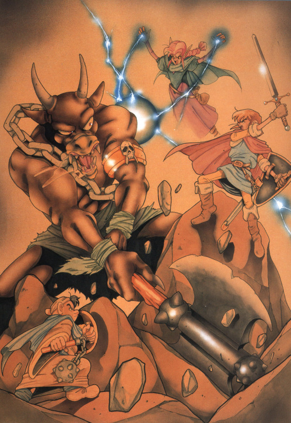 The job of establishing the Disney-esque aesthetic Takahashi and Naitō wanted would go to Yoshitaka Tamaki, an 18-year-old freelance artist Takahashi had met back during his time at Chunsoft. Tamaki also had a Disney influence steeped in classics like The Sword in the Stone. As a child, he watched a lot of Disney cartoons and tried to imitate their art styles. Manga was also an inspiration, particularly Hara Tetsuo’s Hokoto no Ken (Fist of the Northstar). Tamaki enjoyed it so much after reading it in magazines that he bought the whole collection.