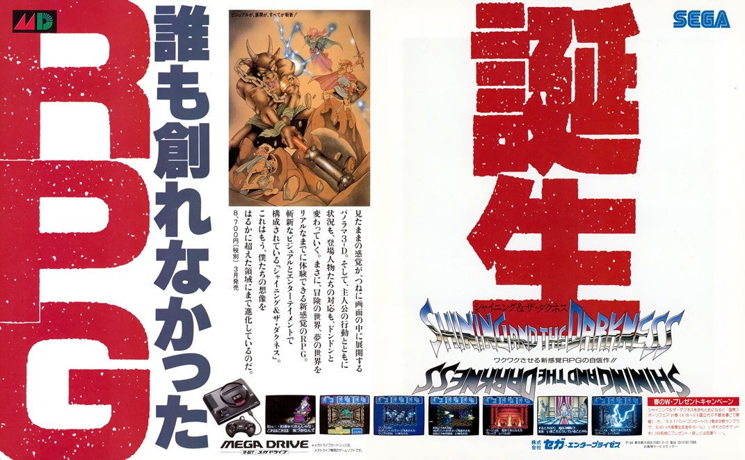 - “Be Mega News: Sega’s Immersive RPG ‘Shining & Darkness’ (Tentative Title) Is Currently in Development and Is Scheduled for Release in March Next Year!” Beep! Mega Drive. November 1990.