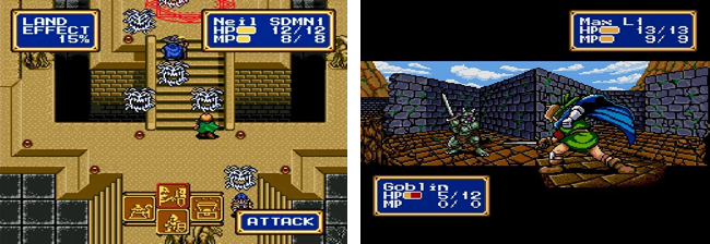 Moving the action from a dungeon to more varied locations meant that there would have to be a greater range in the art style, and the addition of multiple towns and party members brought more complexity to the relationships. Shining in the Darkness had more of a fairy tale atmosphere, with a trio of heroes battling through a labyrinth to rescue a princess. In contrast, Shining Force told a tale of a world at war, with entire cities suffering the consequences. There were deaths (and births!), and the tone was darker.