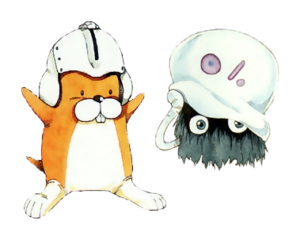 One character that became a fan favorite over the years despite having no promotional evolution was Jogurt (spelled Yogurt in Japan), an odd, hamster-like creature who started as a graphics test and evolved into an in-house joke. Up to this point, the programmers were using actual photos of staff members as placeholders when the character status windows were opened until Tamaki could draw them all. When one of them asked him for a design, Tamaki only had a doodle of the hamster, making Jogurt the first character he drew for the game. “I said to him that I had not even drawn the heroes and that even this drawing was not finished. He told me that it was not important, that anything would work, considering it was only to enter graphic data. This is why I gave him the drawing,” the designer revealed. Jogurt’s name also came from this early stage of development. For some reason, the syllable “yo” came up during a conversation, and when the team looked for words associated with it, different foods came up. One of them was “yogurt,” and the name stuck.